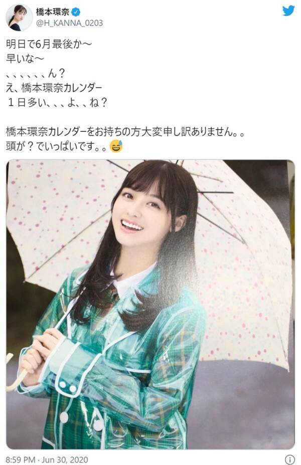 6月31日 橋本環奈さんのグッズカレンダーにミス発覚も神対応でファン歓喜 年7月1日 エキサイトニュース